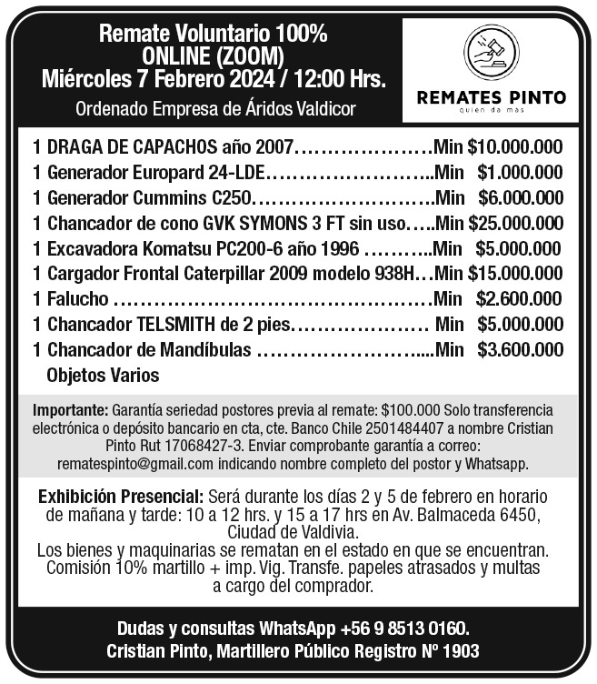 | Lote 1 Min. $200.000 | Lote 2 Min. $250.000 |